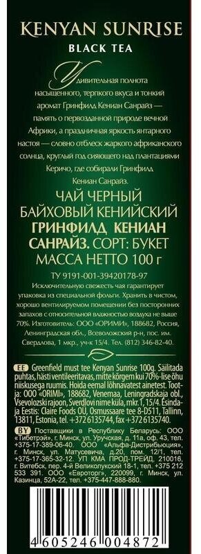 Greenfield чай черный листовой Kenyan Sunrise 100г.