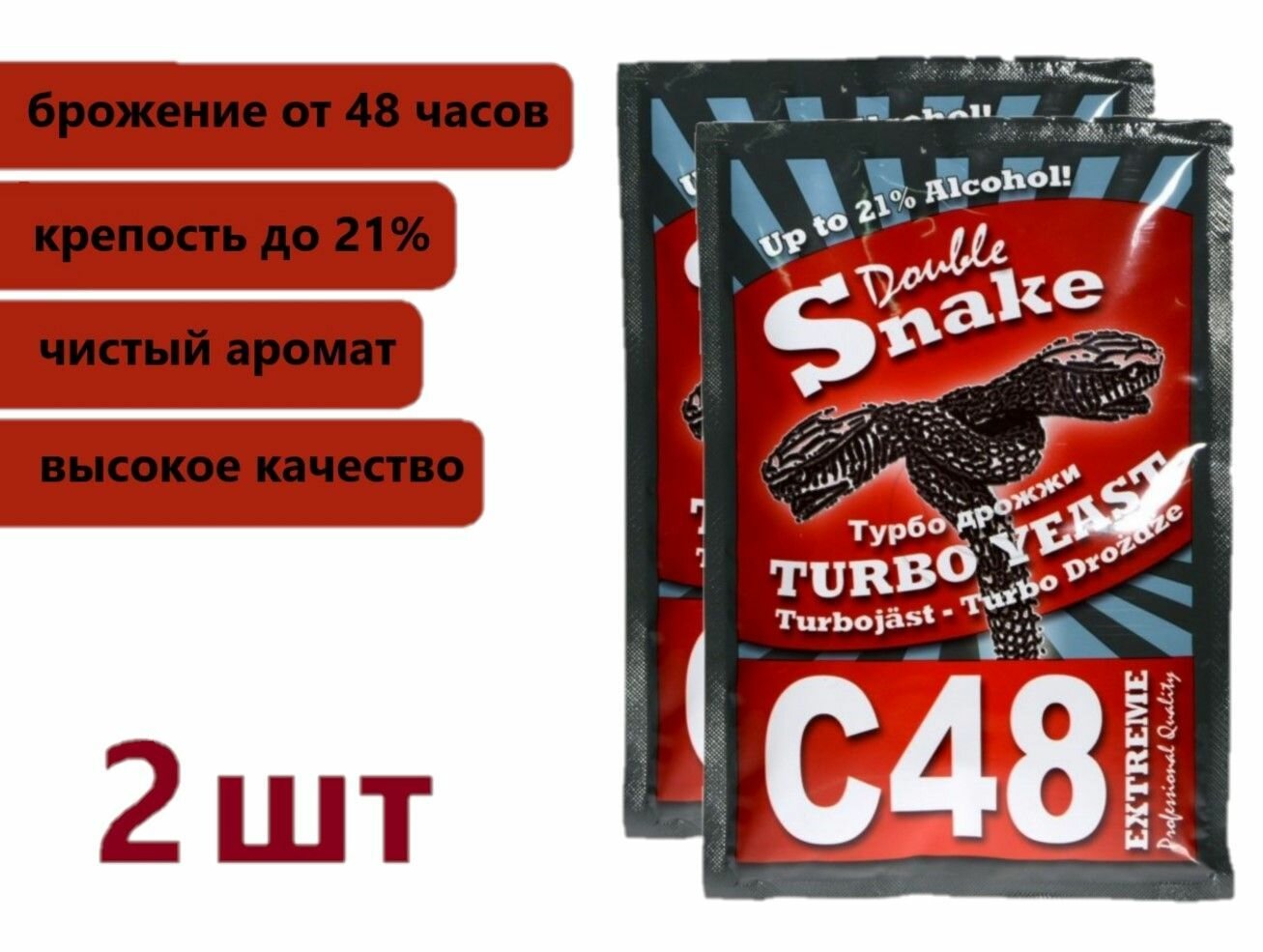 Турбо дрожжи Double Snake С48, 2х130 гр (Турбо дрожжи Дабл Снейк С48, 2 штуки в комплекте)