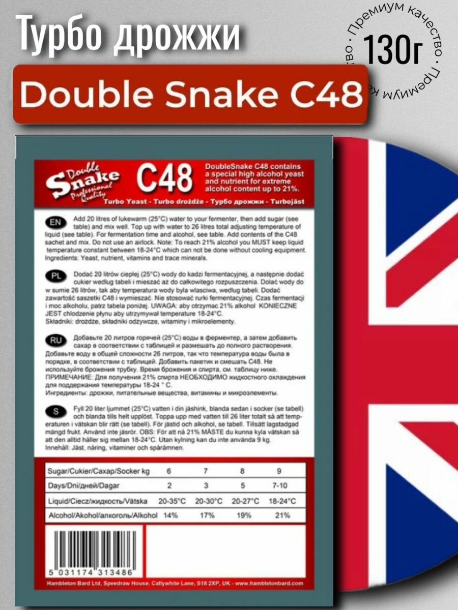Турбо дрожжи Double Snake C48, 130 гр (Дабл Снейк С48)