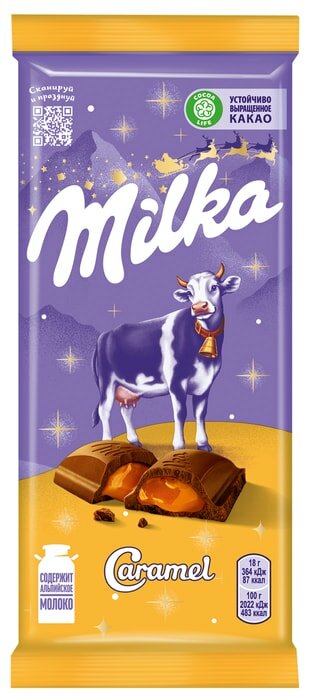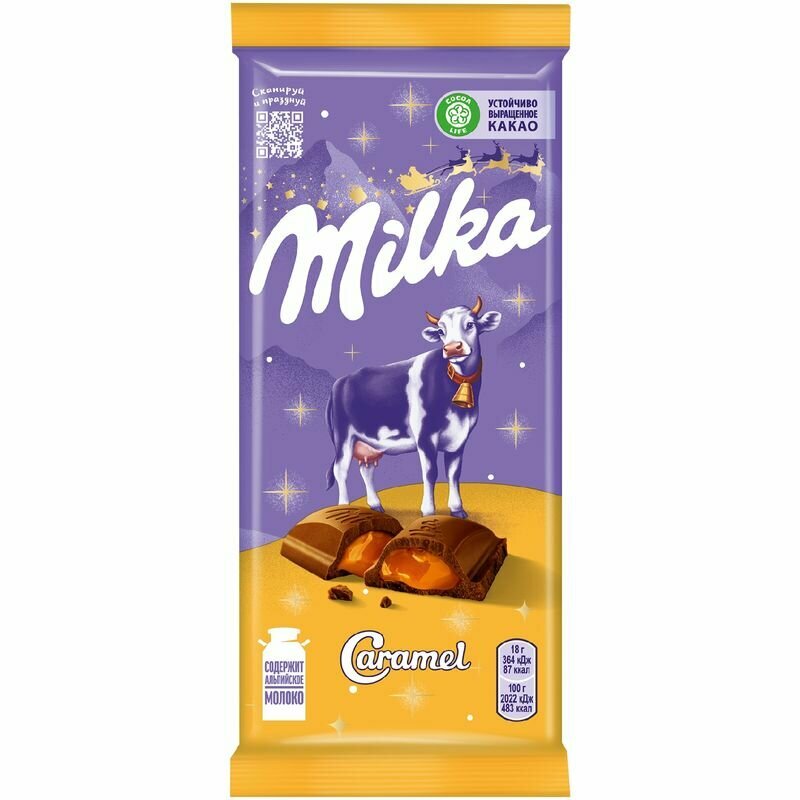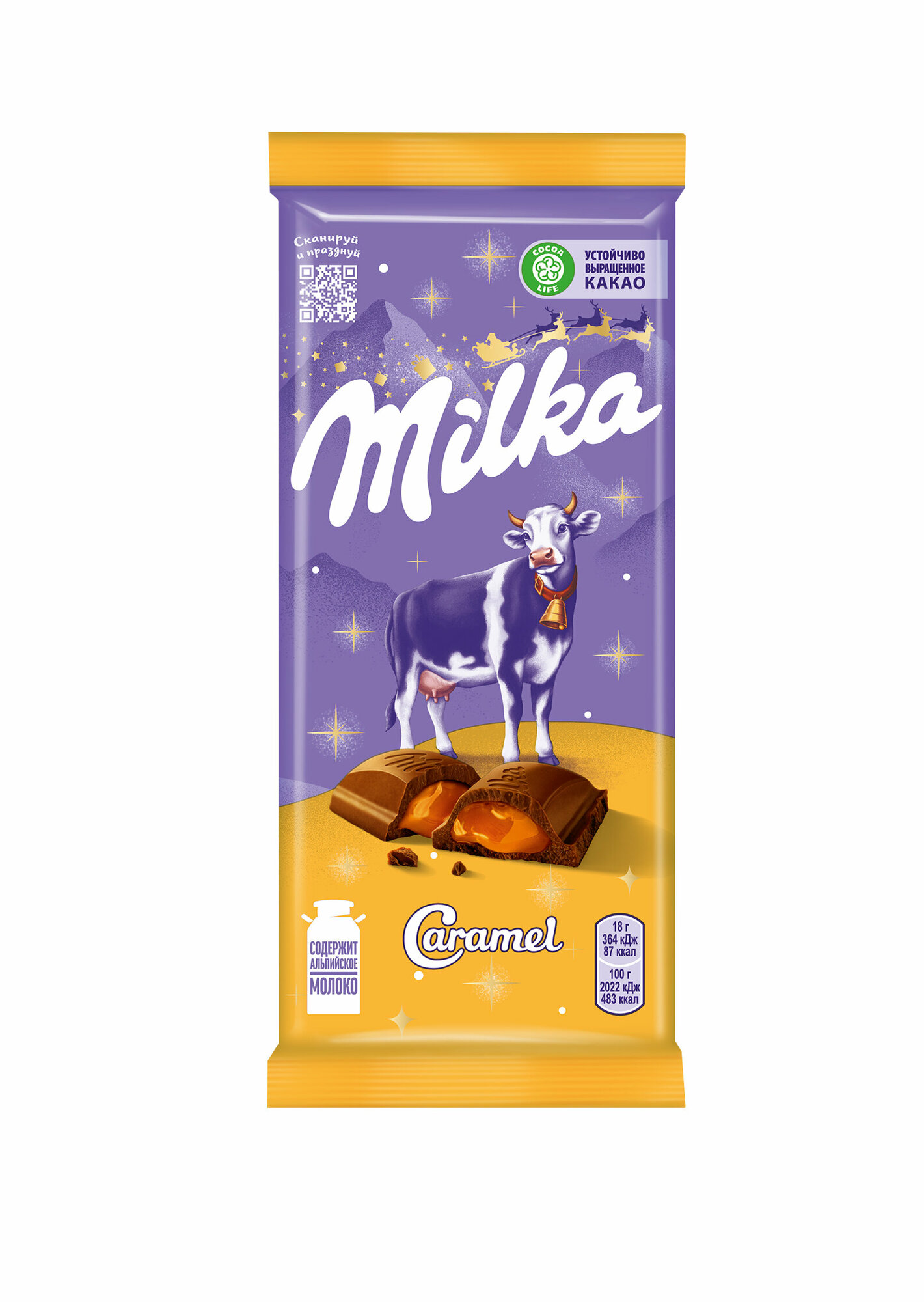 Шоколад молочный MILKA с карамельной начинкой, 90г