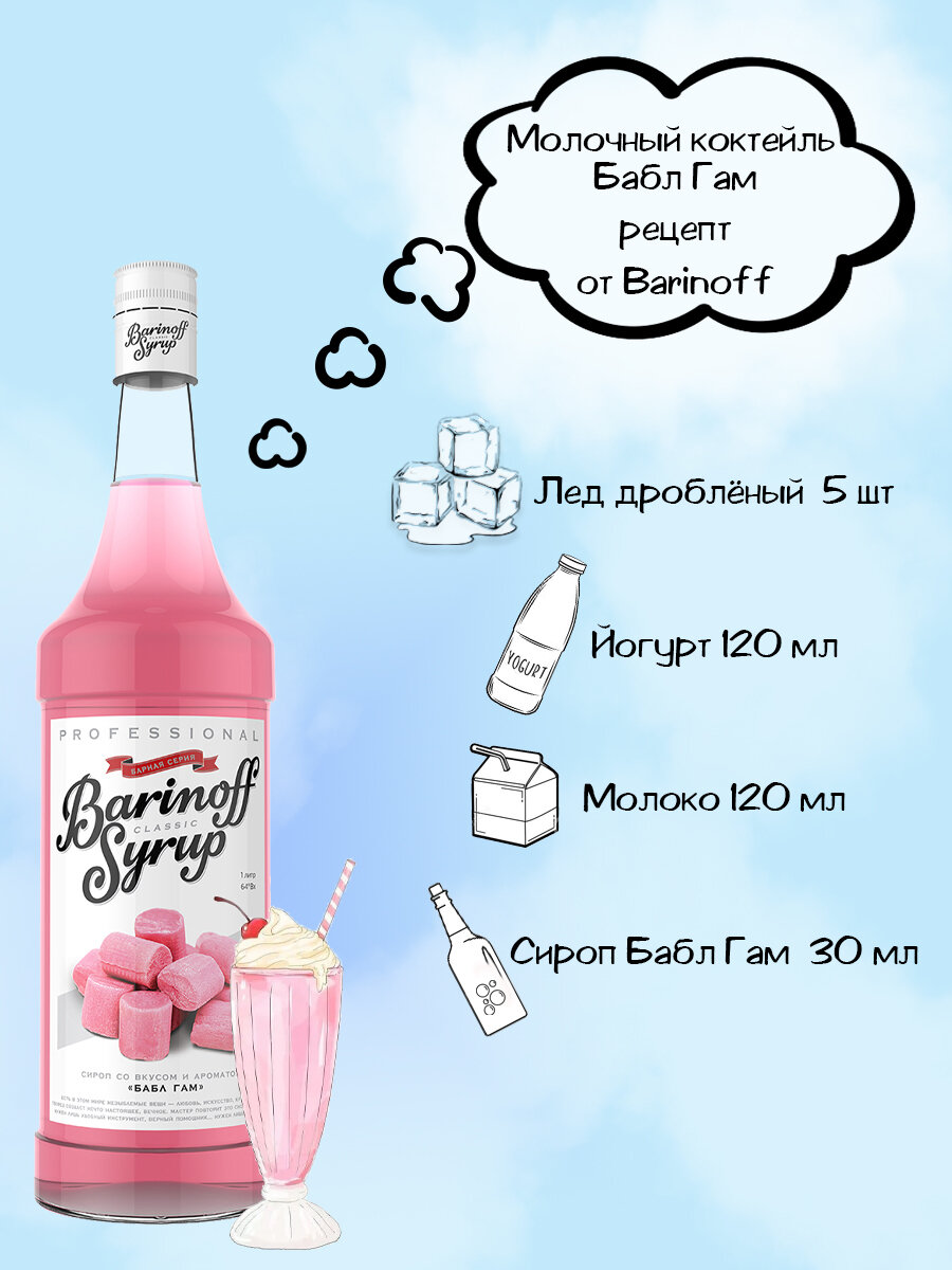 Сироп Barinoff Бабл Гам (для кофе, коктейлей, десертов, лимонада и мороженого), 1л