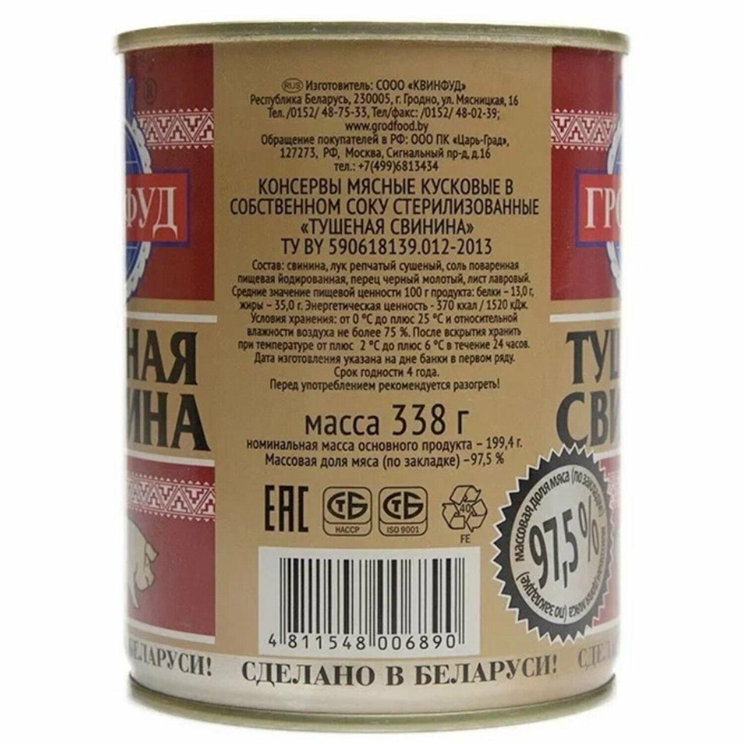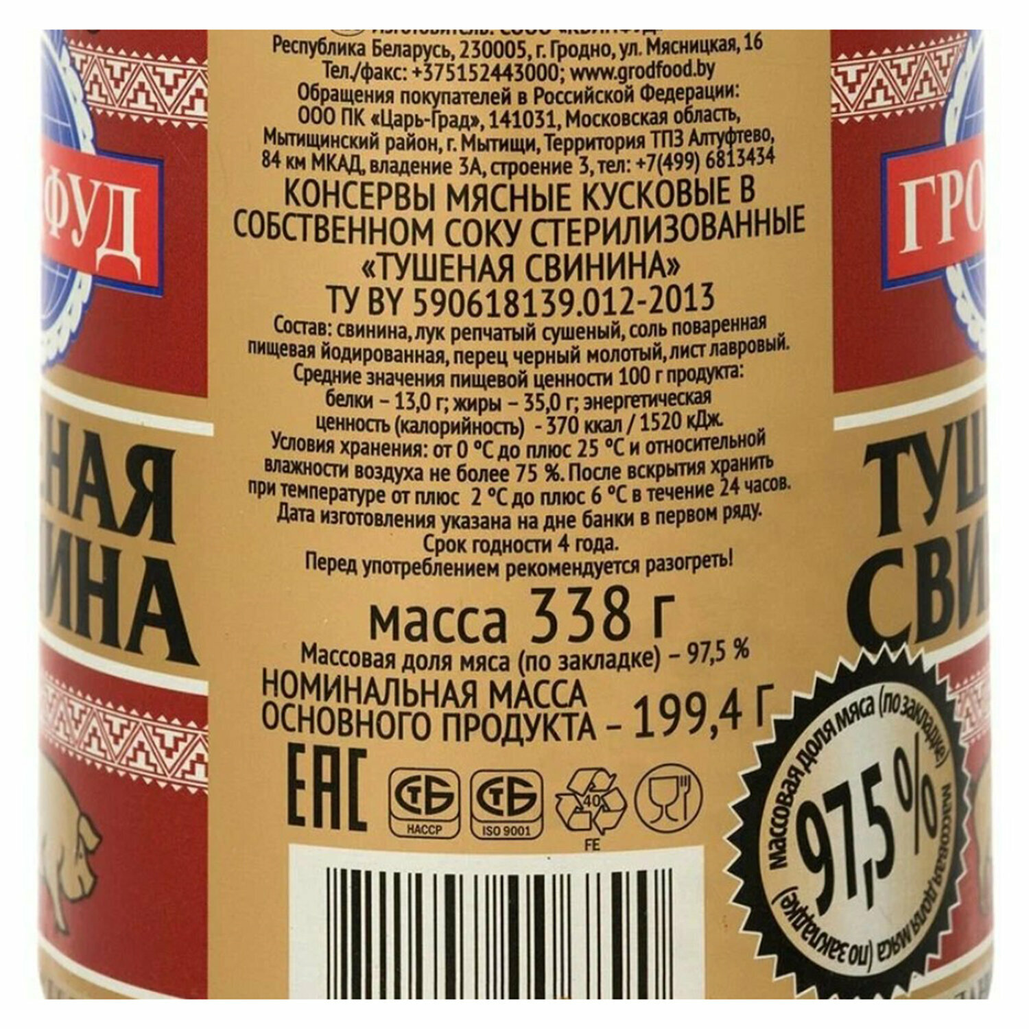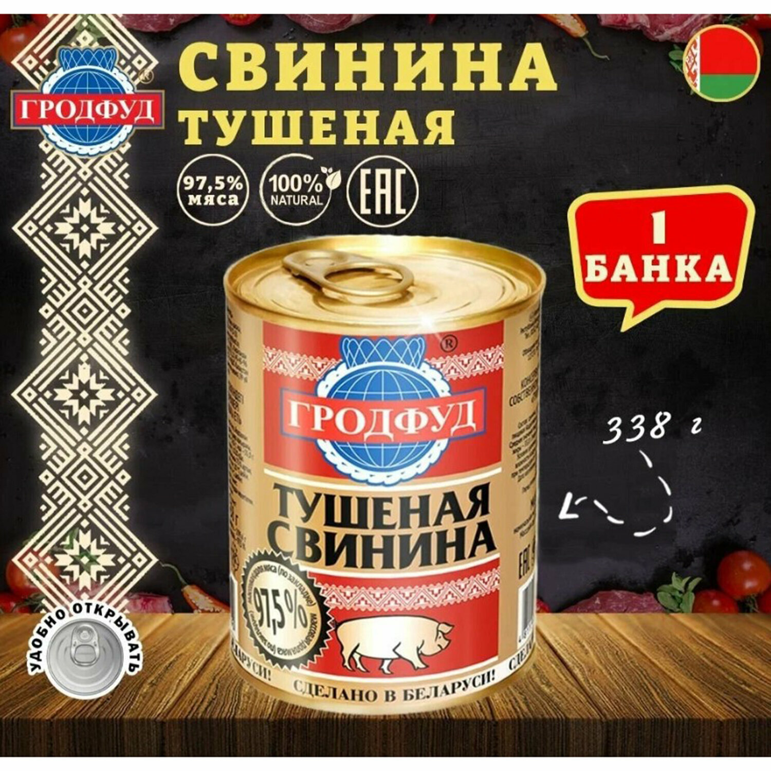 Свинина тушеная ТМ "Гродфуд" Беларусь (97,5% мяса), 338 гр.