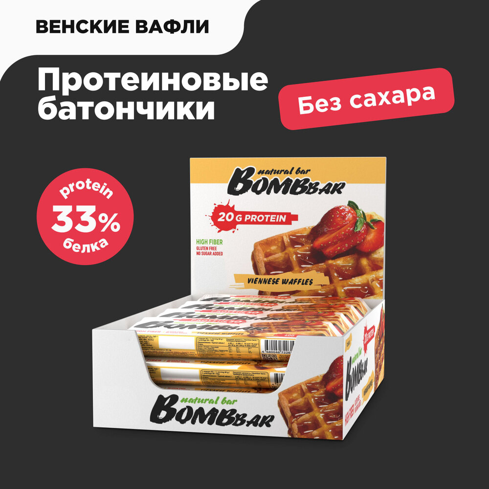 Протеиновый батончик BOMBBAR Protein Bar, Венские вафли (20шт по 60г)