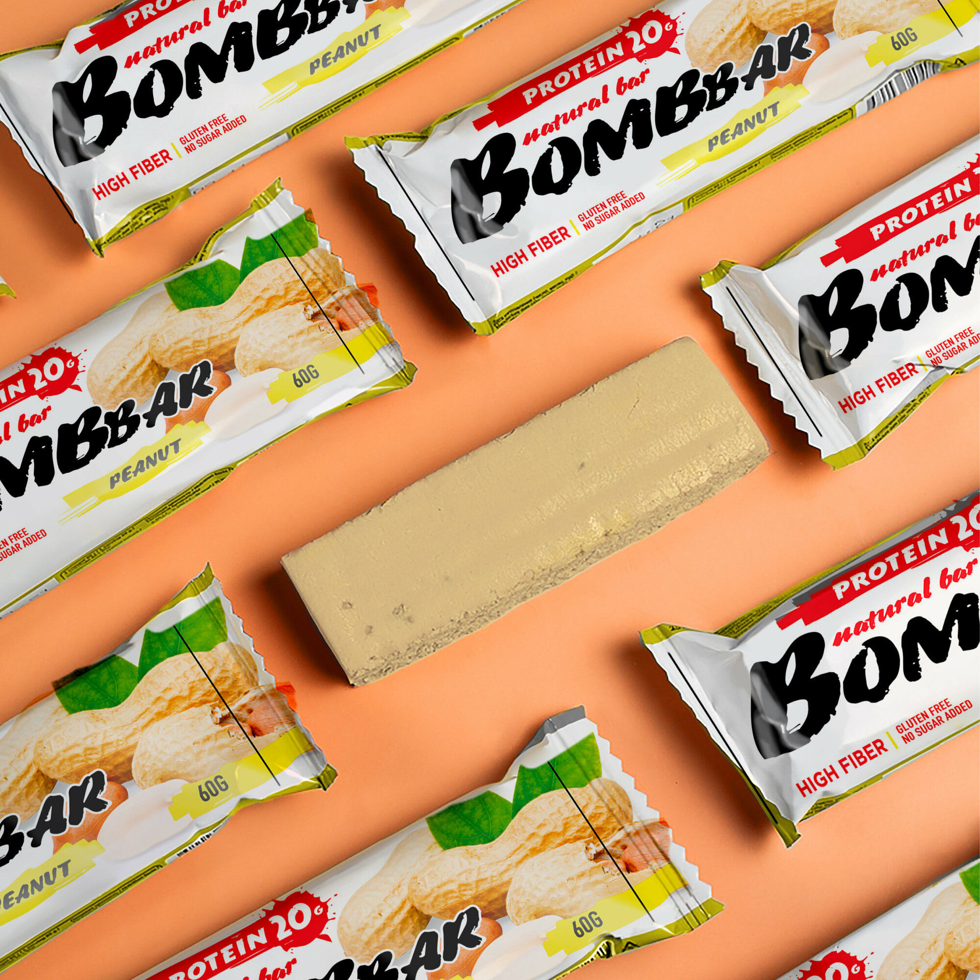 Bombbar Набор батончиков неглазированных протеиновых, вкус арахис 20 штук по 60 г