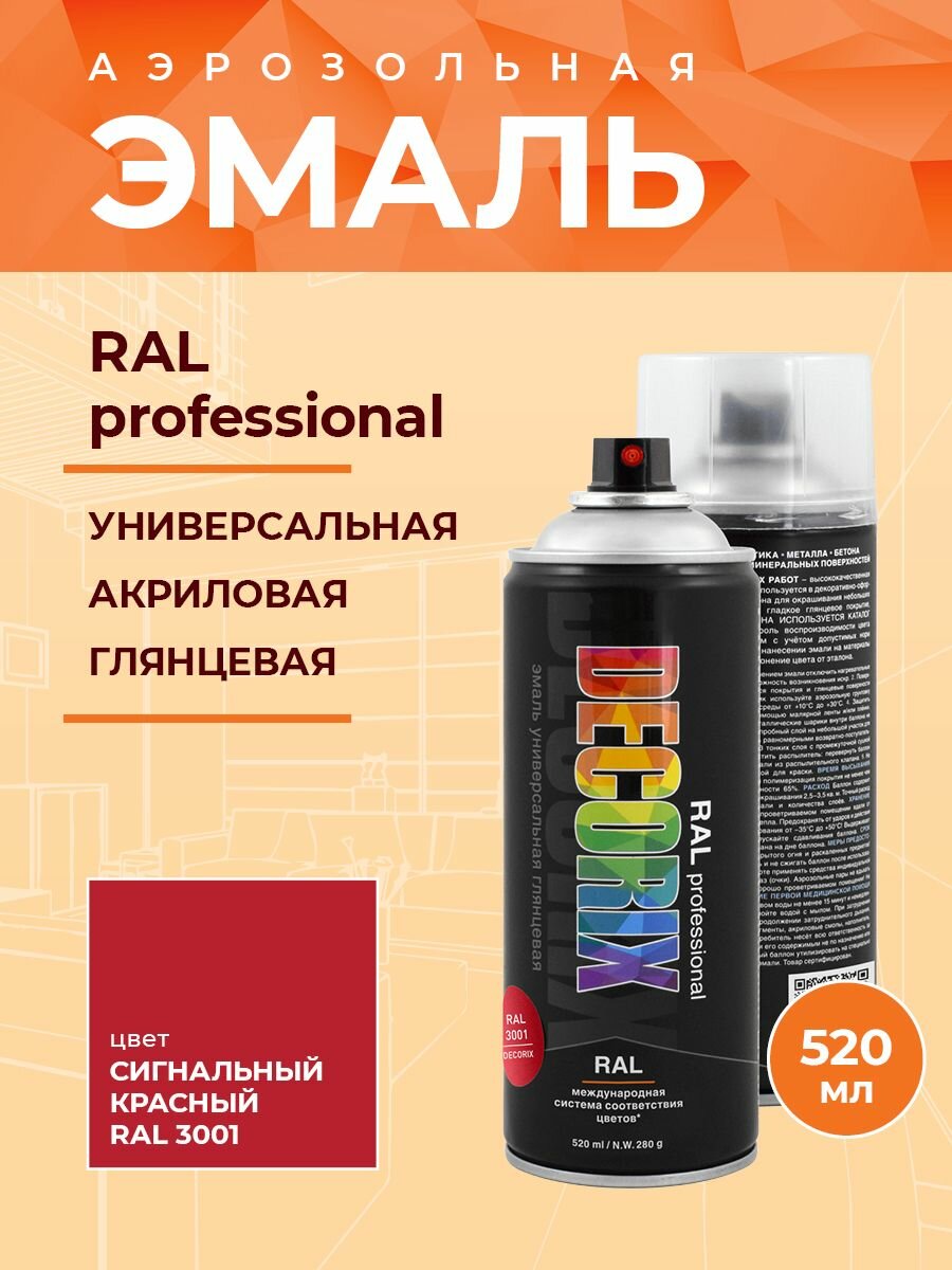 Купить Эмаль акриловая универсальная Decorix RAL Professional (520мл) RAL 3001 (0138-3001 DX)