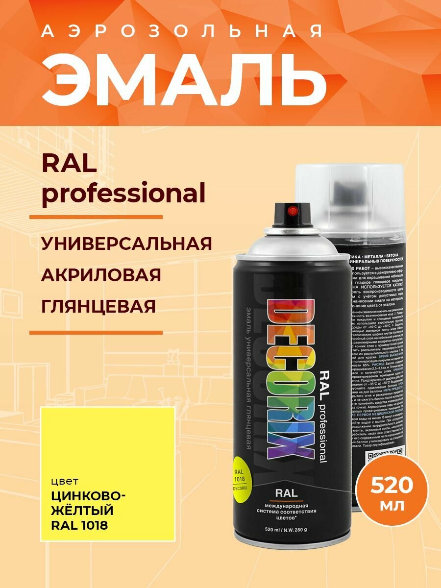 Decorix Аэрозольная эмаль RAL professional (цинково-желтый, RAL 1018, глянец, 520 мл)