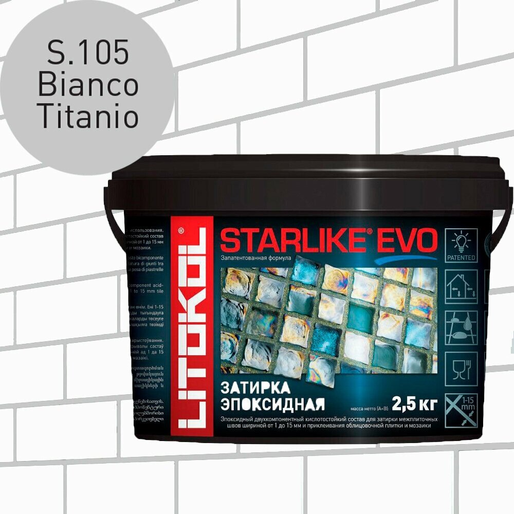 Купить Затирка эпоксидная LITOCHROM STARLIKE EVO S.105 BIANCO TITANIO светло-серая, 2,5 кг:
