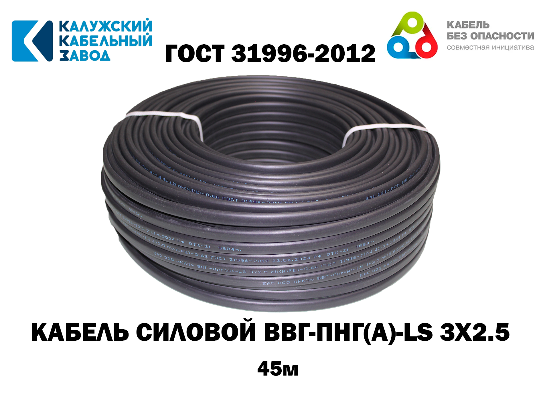 Кабель силовой ВВГ-Пнг(А)-LS 3х2.5 кв. мм калужский кабельный завод ГОСТ черный 45 м