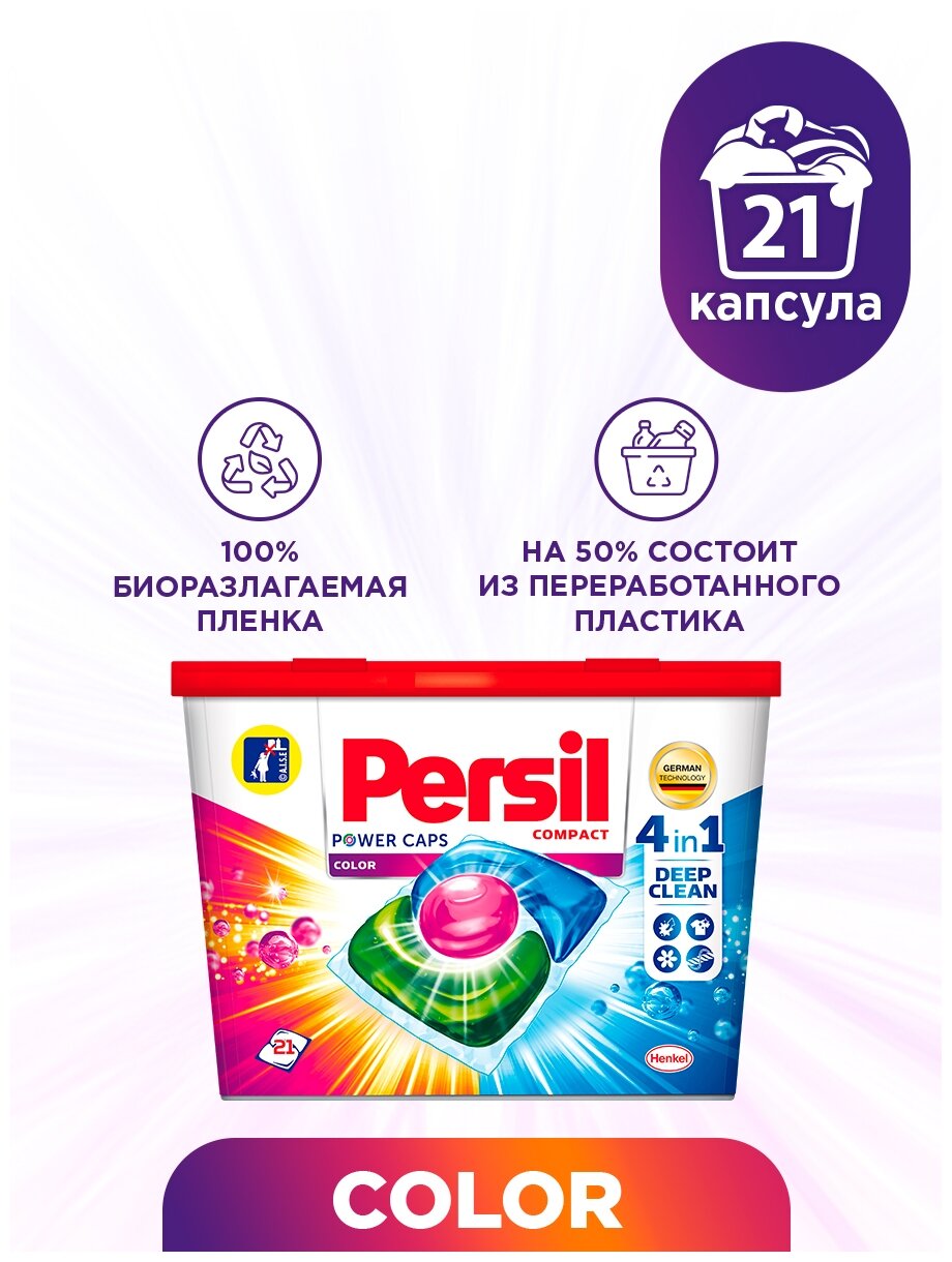 Капсулы для стирки Персил, Power Caps 4в1 Color, для цветного белья, 21 шт