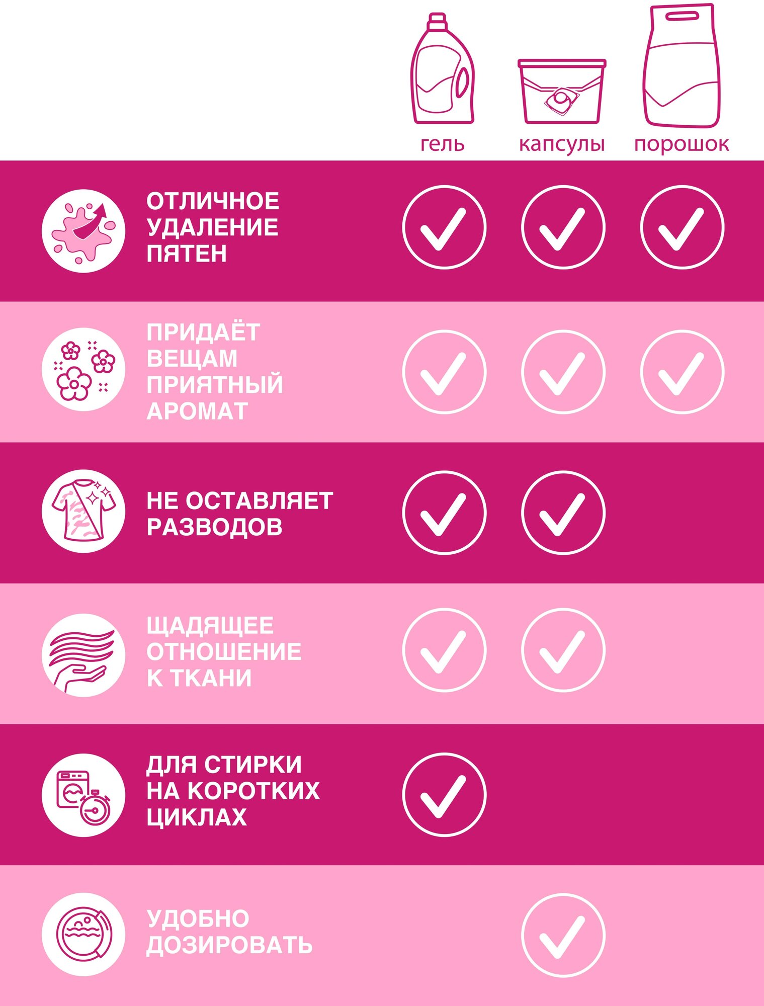 | Плюсы: | Чудесный аромат, отлично отстирывает даже сложные пятна. |