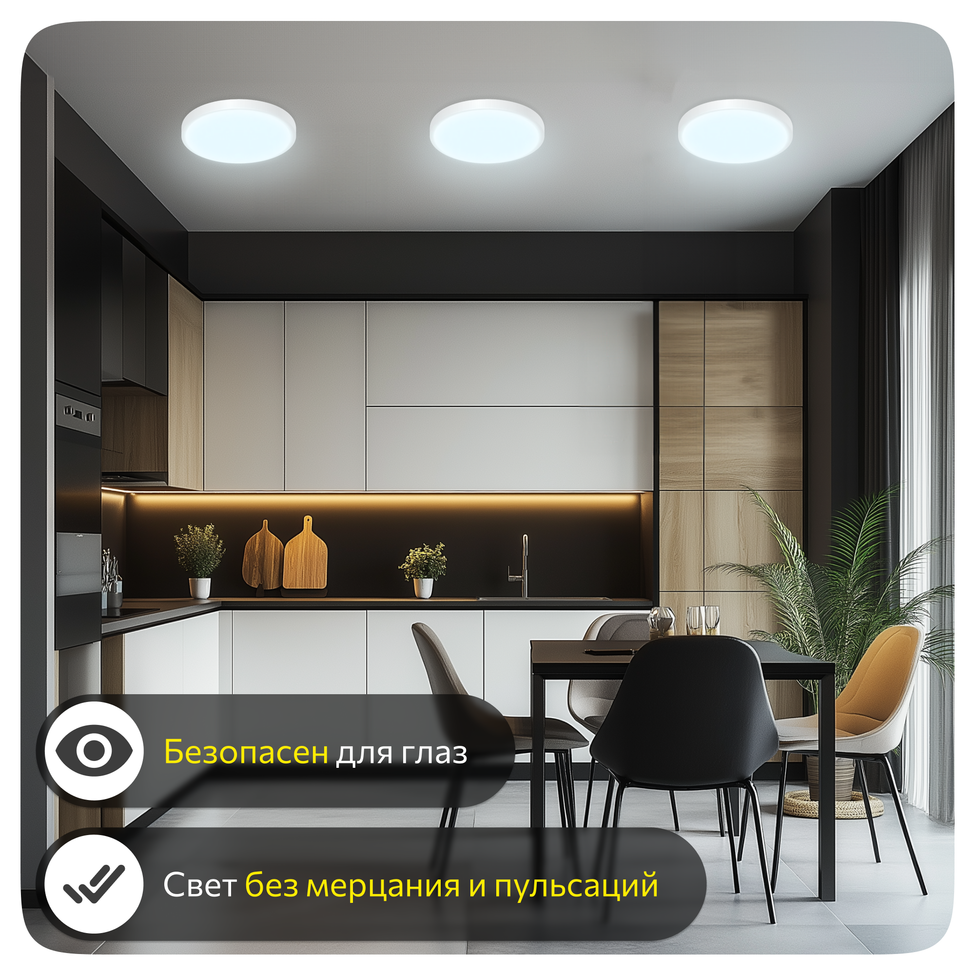 | Плюсы: | Очевидный, лёгкий монтаж. Разная цветовая температура. Яркий свет. Маленький вес светильника. В комплекте уже есть саморезы для монтажа. Симпотичный. |
