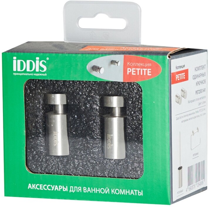 Крючок для ванной Iddis Petite одинарный на шуруп металл сатин (2 шт.) (PET2SS1i41)