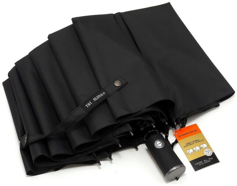 Зонт Три слона, автомат, 3 сложения, купол 125 см., 12 спиц, черный