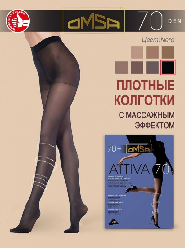 Колготки женские OMSA ATTIVA 70 den LYCRA®, размер 4=L, цвет Nero=Чёрный