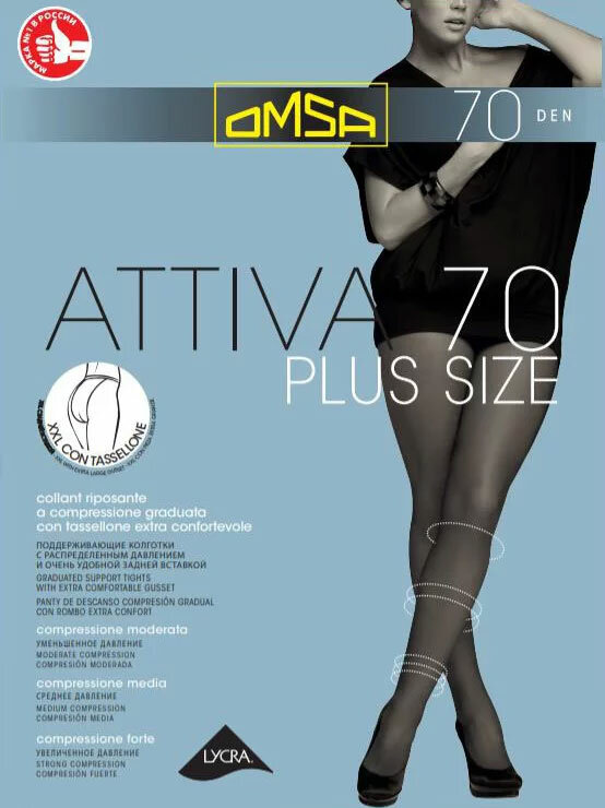 Колготки женские OMSA ATTIVA 70 den LYCRA®, размер 6=XXL Plus Size, цвет Nero=Чёрный