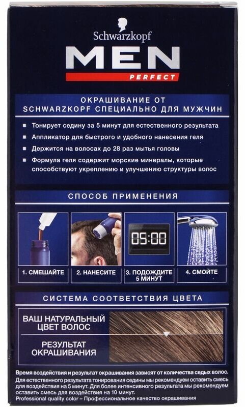 Шварцкоп / Schwarzkopf Men Perfect - Тонирующий гель против седины 60 Средне-каштановый 80 мл