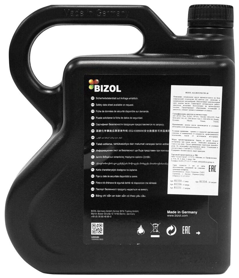 Ниже Вы можете прочитать отзывы на Масло моторное НС-синтетическое BIZOL Allround 5W-30 SN GF-5 4л, ознакомится с подробными характеристиками, посмотреть интересные обзоры и фотографии на Масло моторное НС-синтетическое BIZOL Allround 5W-30 SN GF-5 4л.