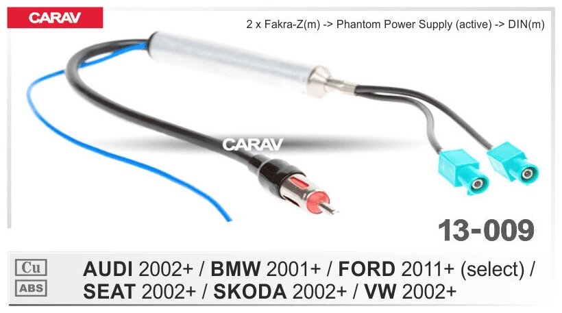 Антенный переходник для а/м AUDI /SEAT / SKODA / VW 2002+ BMW 2001+; FORD 2011+ CARAV 13-009