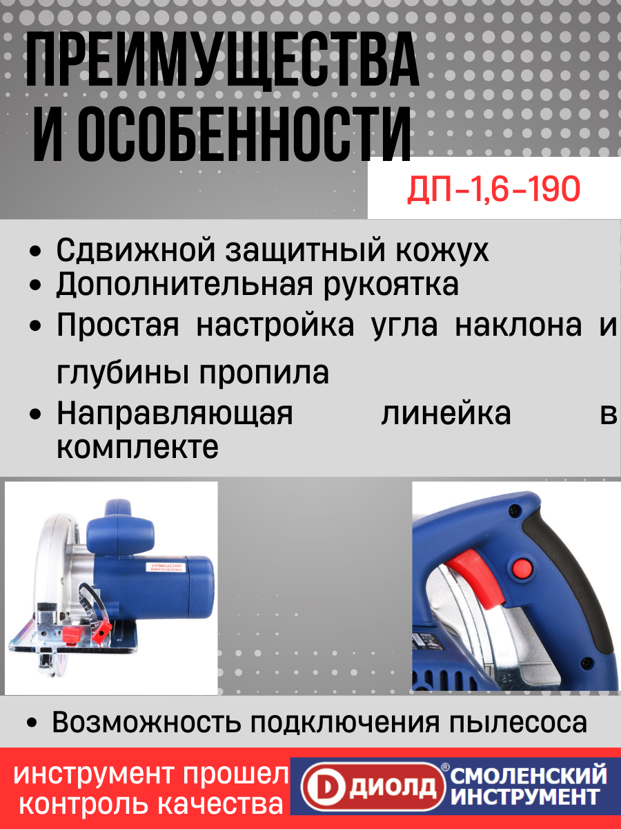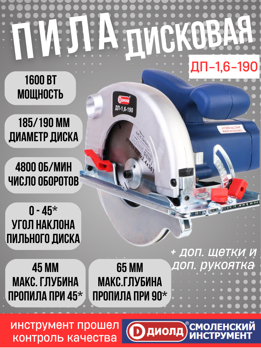 Дисковая пила диолд ДП-1,6-190, 1600 Вт синий
