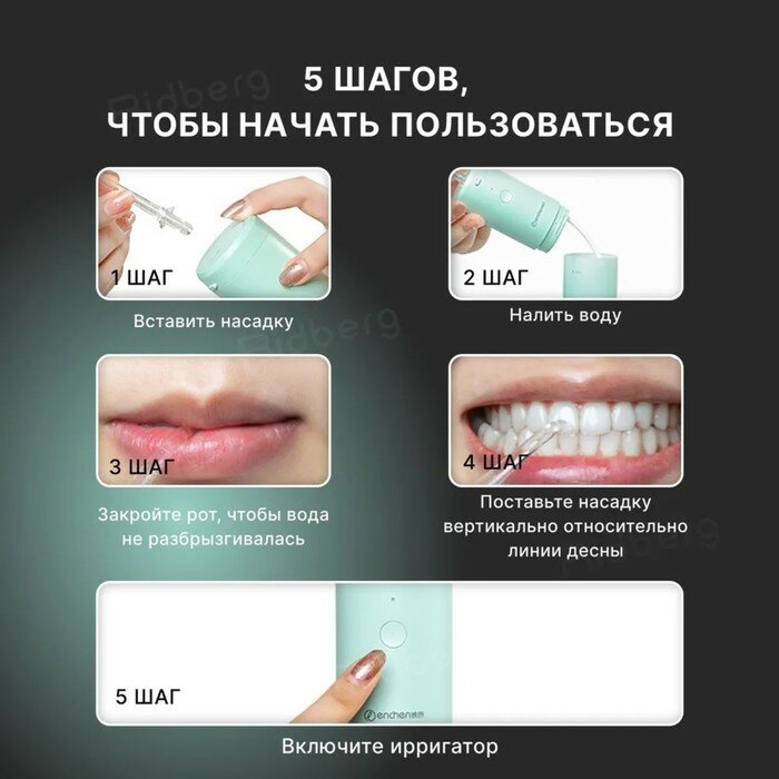 СохранитьИрригатор Enchen Water Flosser 3, портативный, 130 мл, 3 режима, 3 насадки, от АКБ, зеленый интересное: