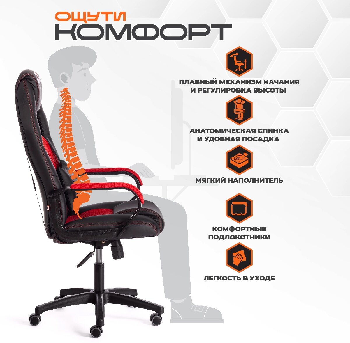 Кресло компьютерное игровое TetChair DRIVER кож/зам/ткань, черный/красный