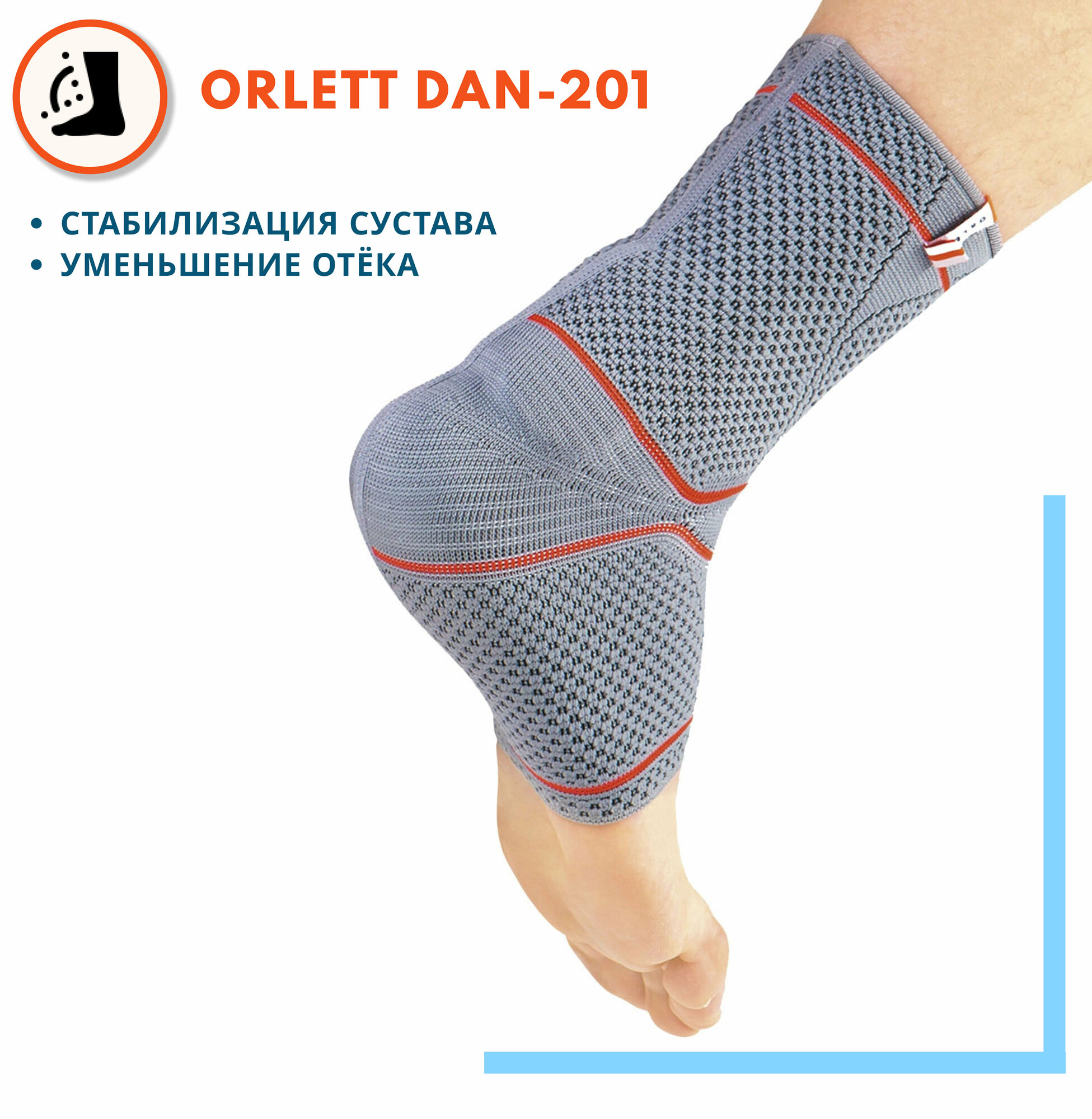 Бандаж голеностопный Orlett Energy DAN-201, размер - m, серый