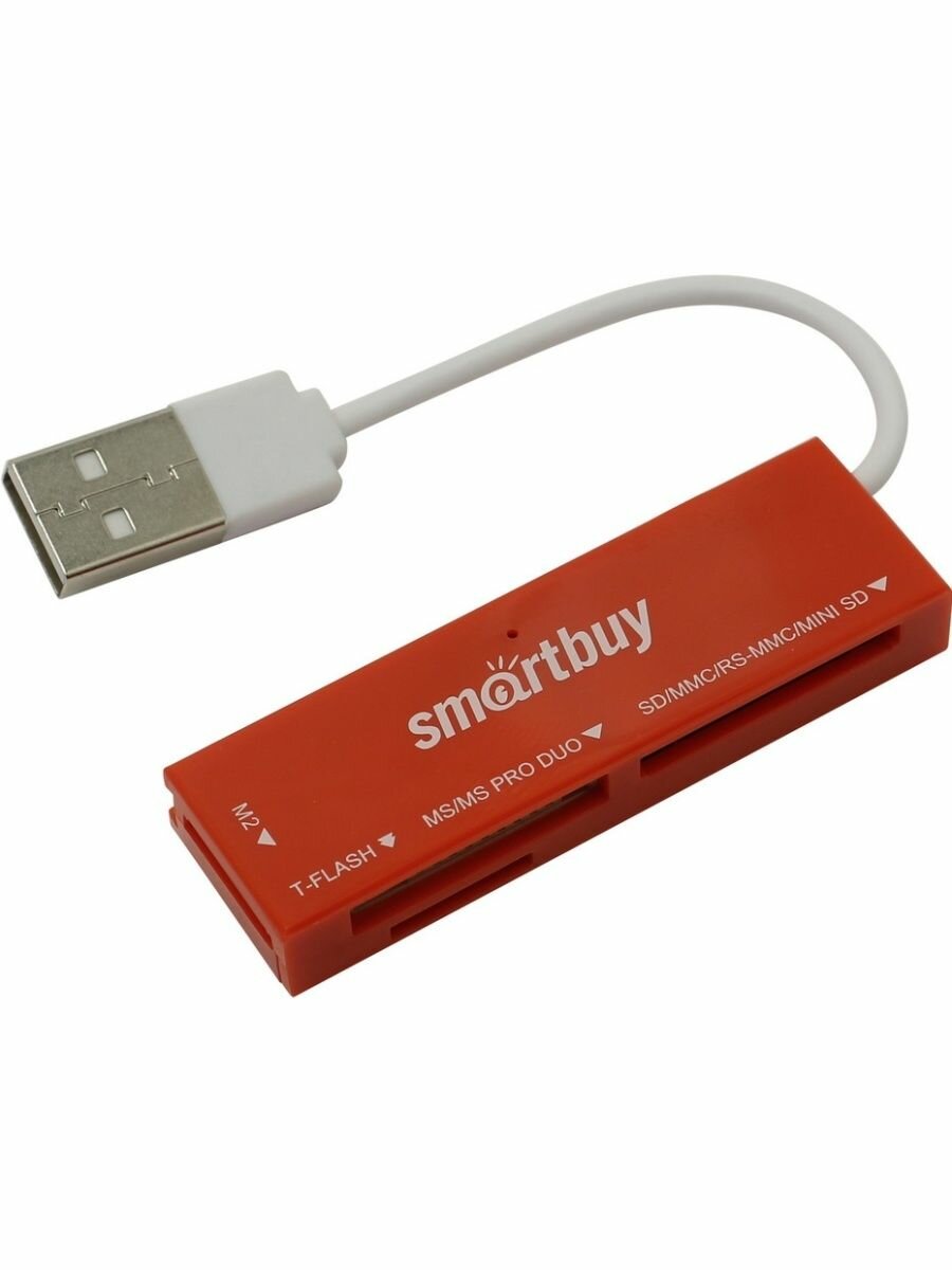 Купить Картридер Smartbuy 717, USB 2.0 SD/microSD/MS/M2, красный (SBR-717-R)