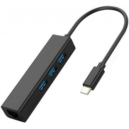 Сетевой переходник USB -С - LAN RJ45 c USB хабом на 3 порта, KS-is