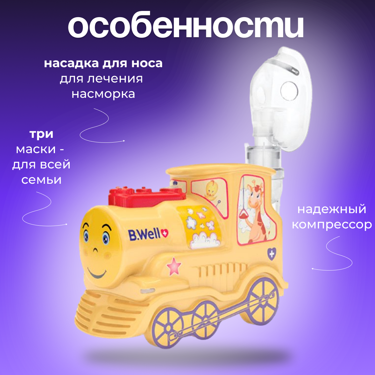 Ингалятор компрессорный PRO-115 "паровозик" (3 маски, мундштук, насадка для носа, сумка, пониженный уровень шума) интересное:
