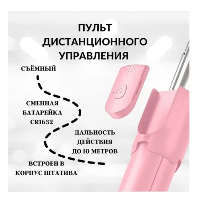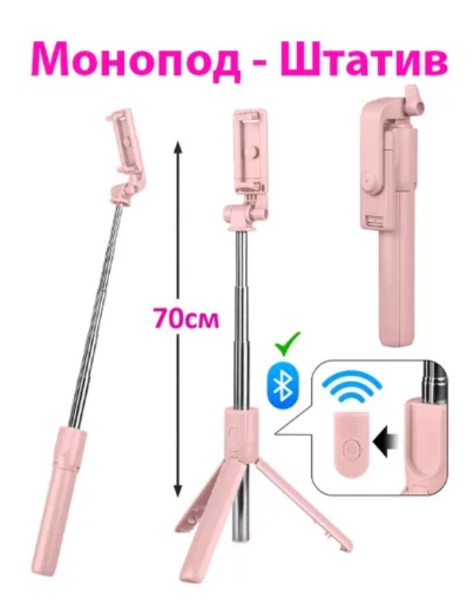Купить Монопод / Трипод / Селфипалка с Bluetooth пультом R1S / Монопод для селфи / розовый