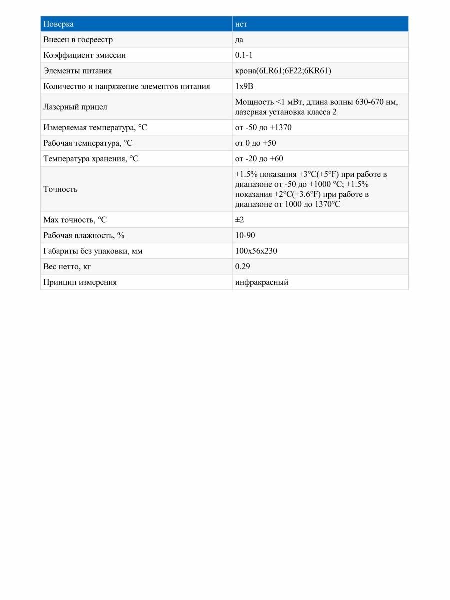| Тип | пирометр (бесконтактный термометр) |