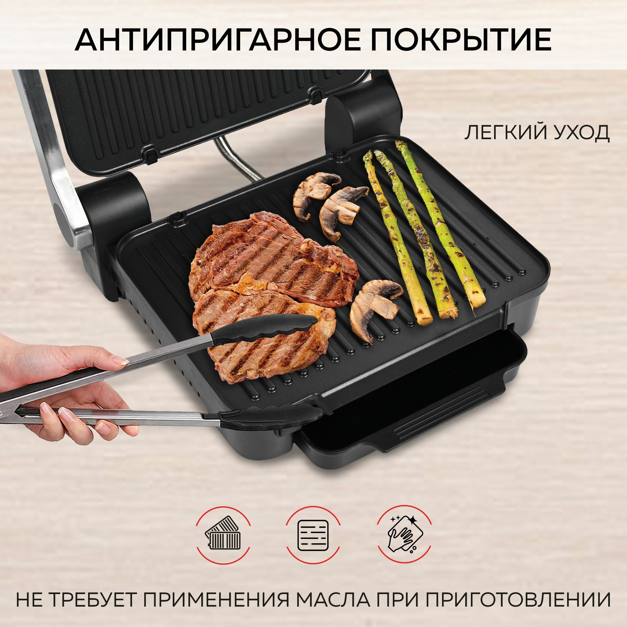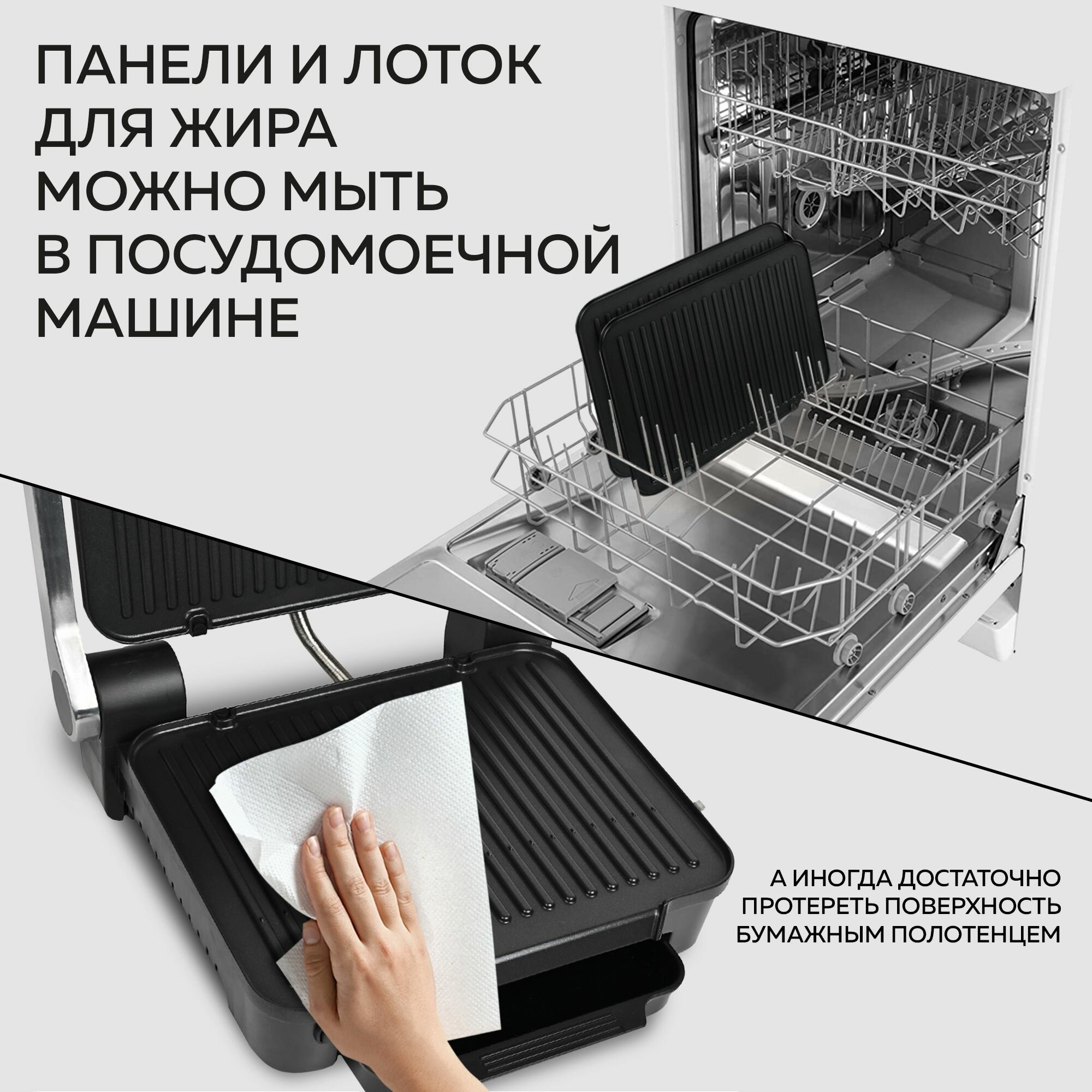 Электрический гриль GF-1500, съемные панели, сенсорное управление, 7 программ, 4 степени прожарки