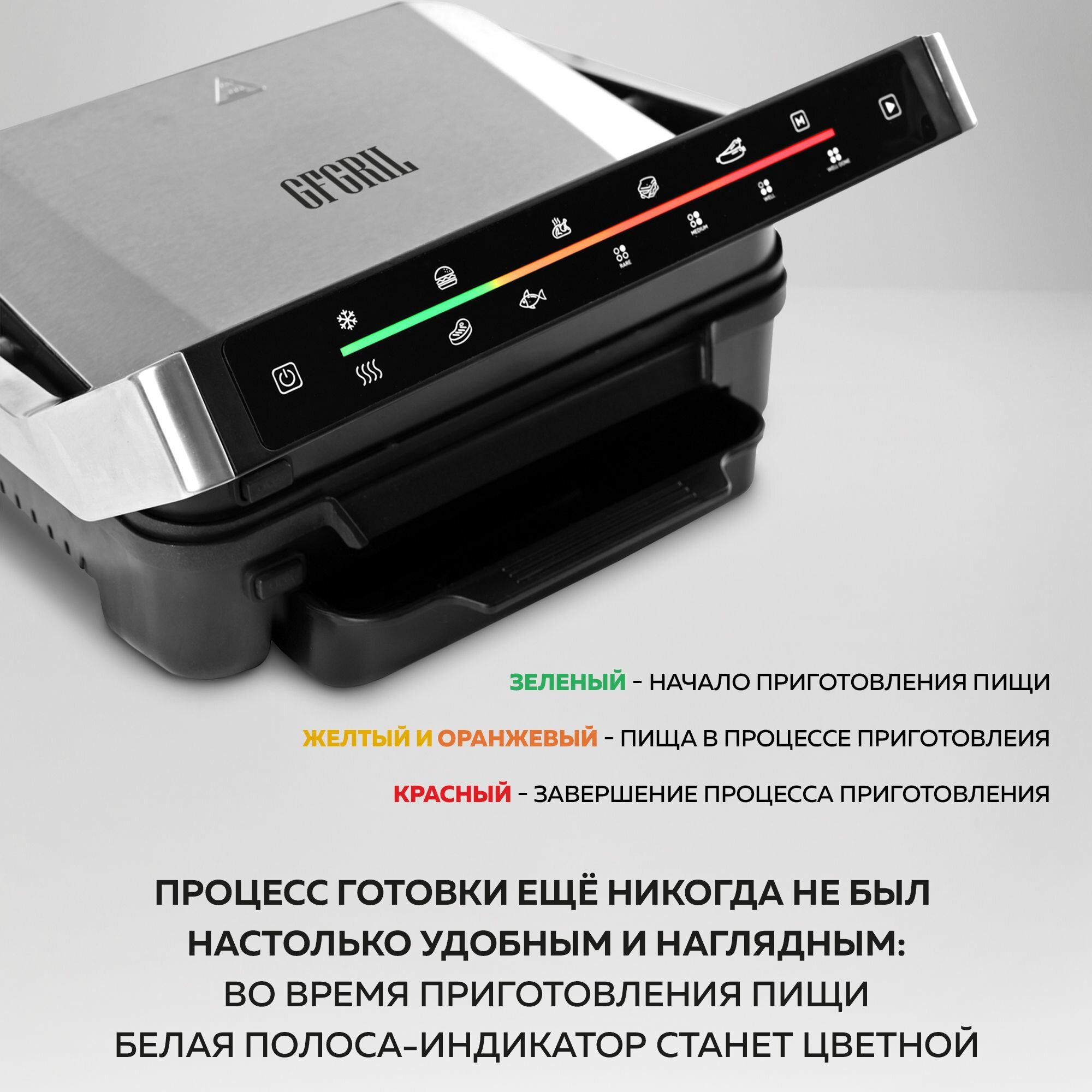 GFGRIL Электрический гриль GFGRIL GF-1500, съемные панели, сенсорное управление, 7 программ, 4 степени прожарки / компактный электрогриль GF-1500