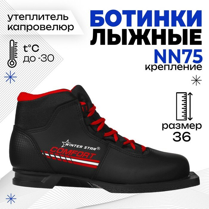Купить Ботинки лыжные Winter Star comfort, Nn75, р. 36, цвет чёрный, лого красный Winter Star 9796070