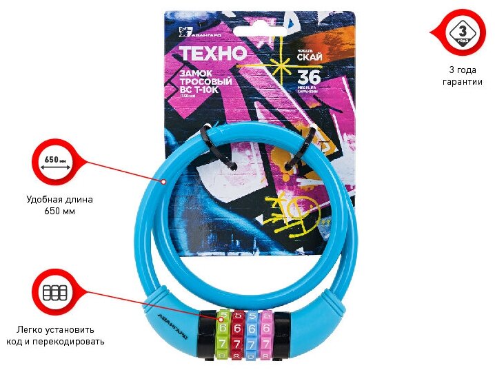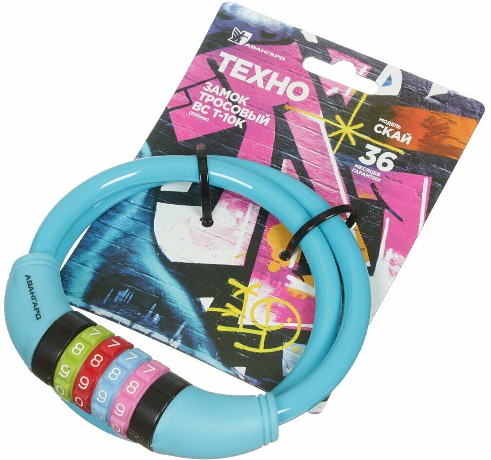 Авангард ВС-Т10К (650 мм) техно скай замок навесной кодовый с тросом (d=10мм) длина 65см (велосипед.