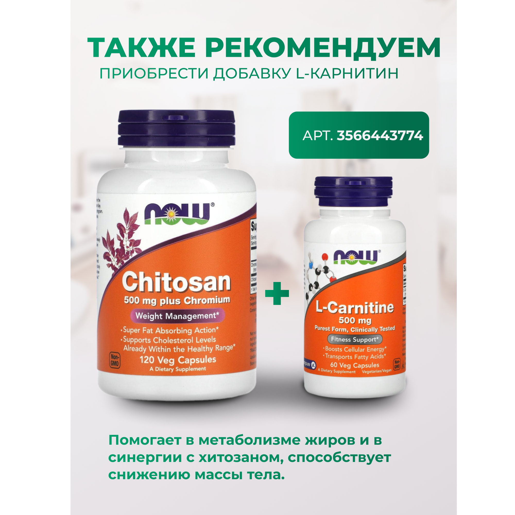 Купить NOW Chitosan 500 мг, 120 капс., Хитозан