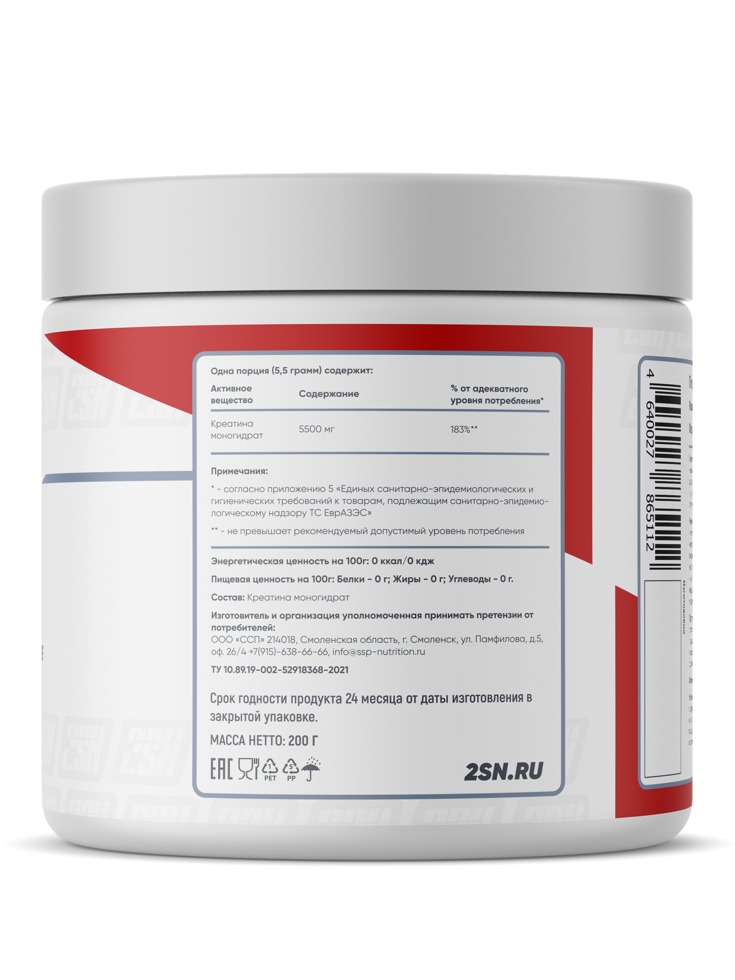 Креатин моногидрат порошок 2SN Creatine powder 200г, нейтральный