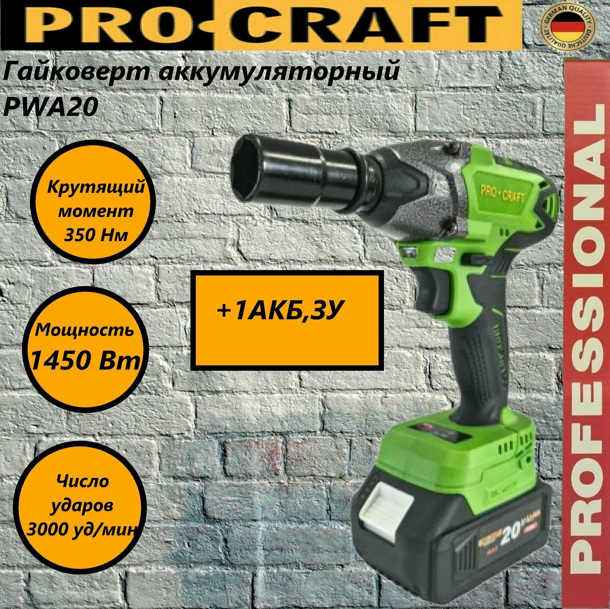 Аккумуляторный гайковерт Pro-Craft Professional PWA20. 350Нm. Аккумулятор и зарядное устройство в комплекте.
