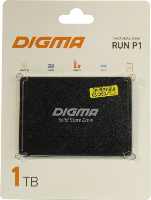 Твердотельный накопитель SSD 2.5 1 Tb Digma Run P1 Read 500Mb/s Write 400Mb/s 3D NAND TLC