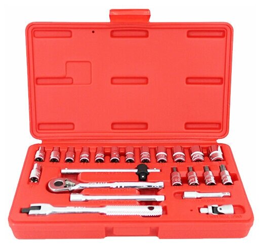 JTC Набор головок торцевых и насадок 1/4"" 6-ти гранных 4-13мм, Т20-Т40 в кейсе 23 предмета Jtc-h223 .