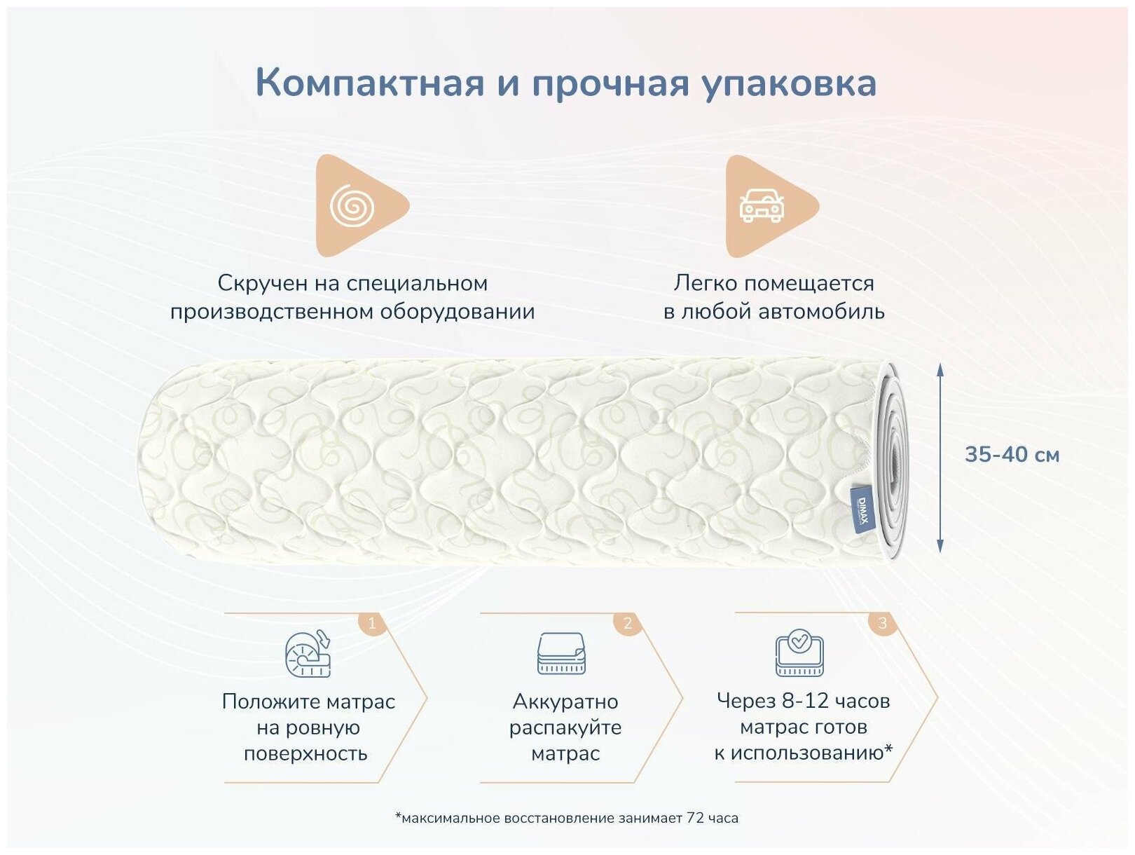 | Отзыв: | Лежать на матрасе очень комфортно. Комфортный по высоте. Не прогибается и не мнется. Наматрасник все равно используем. Никаких посторонних запахов у матрасов не заметили. Покупкой мы довольны. |