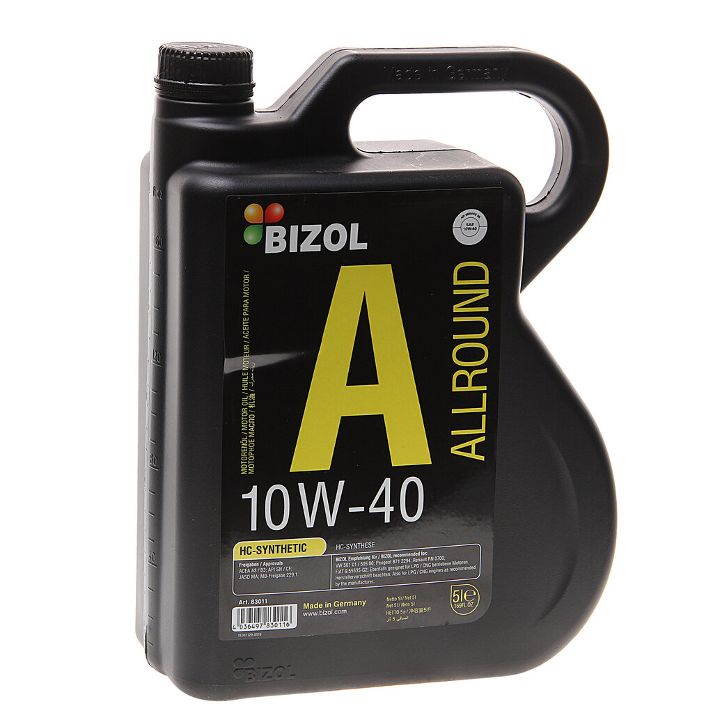 BIZOL BIZOL 83011 BIZOL НС-синт. мот.масло Allround 10W-40 SN A3B4 MA2 (5л) BIZOL 83011