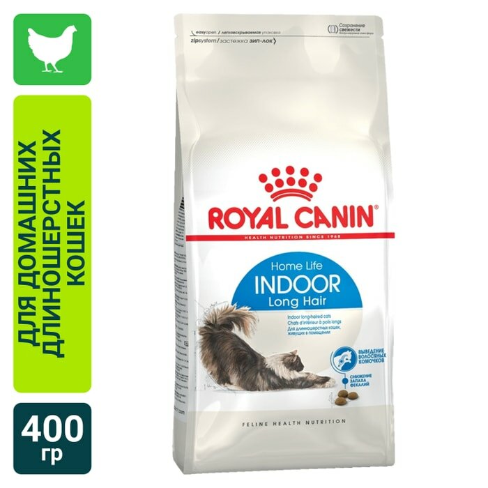 Royal Canin Indoor Long Hair для длинношерстных домашних кошек Курица, 2 кг.