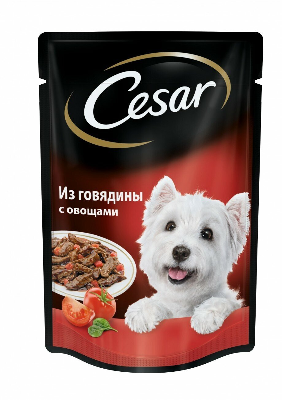 Купить Cesar влажный корм для взрослых собак с говядиной и овощами, в паучах - 85 г х 28 шт