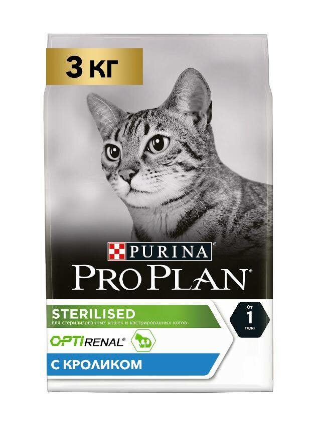 Сухой корм для кошек Pro Plan Sterilised для поддержания здоровья почек после стериализации, с кроликом, 3 кг