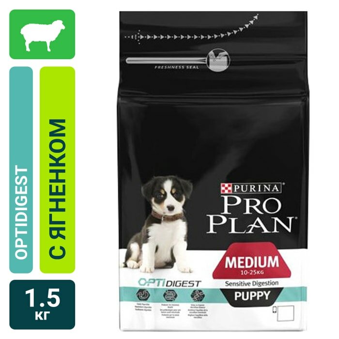 PRO PLAN PUPPY MEDIUM SENSITIVE DIGESTION для щенков средних пород с чувствительным пищеварением с ягненком и рисом (1,5 кг)