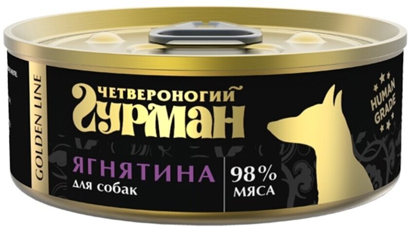 Консервы для собак Четвероногий Гурман Golden line, ягнятина натуральная, 100г