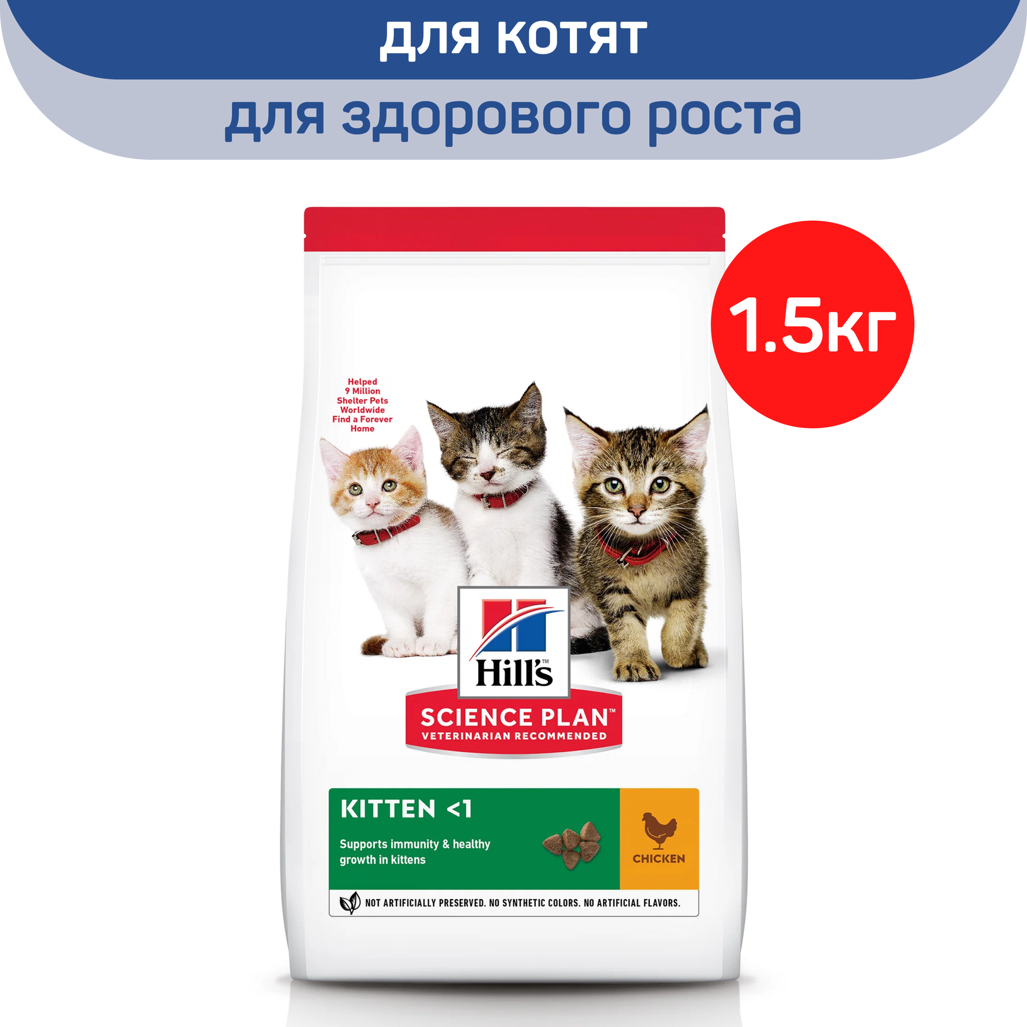Сухой корм Hill's Science Plan для котят для здорового роста и развития, с курицей, 1,5 кг (срок годности 01.06.2024)