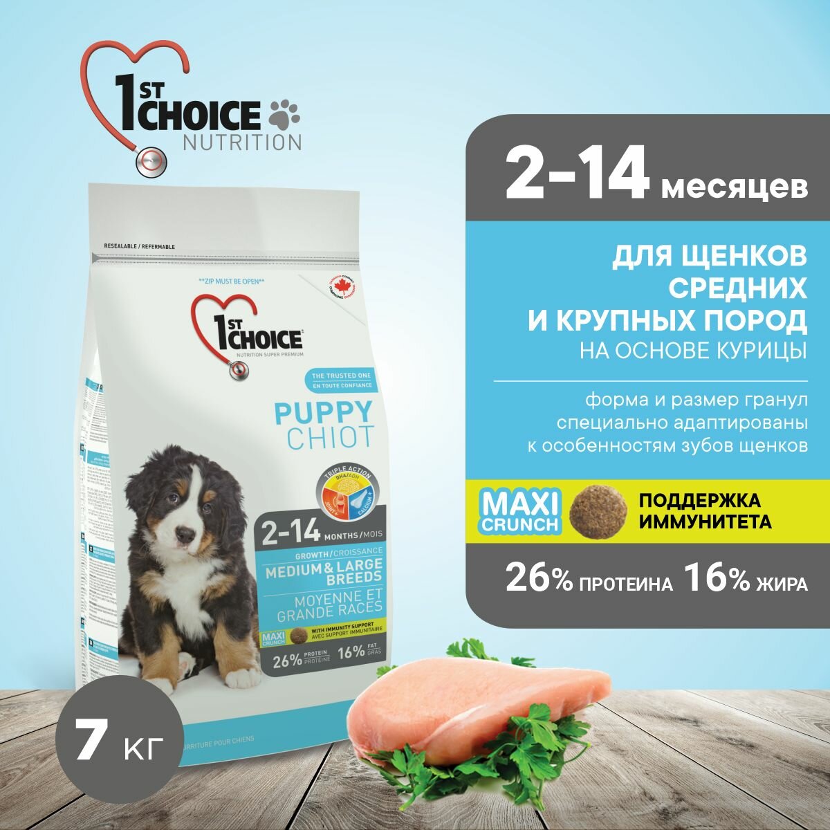 1ST CHOICE PUPPY MEDIUM & LARGE BREEDS для щенков средних и крупных пород с курицей (7 кг)