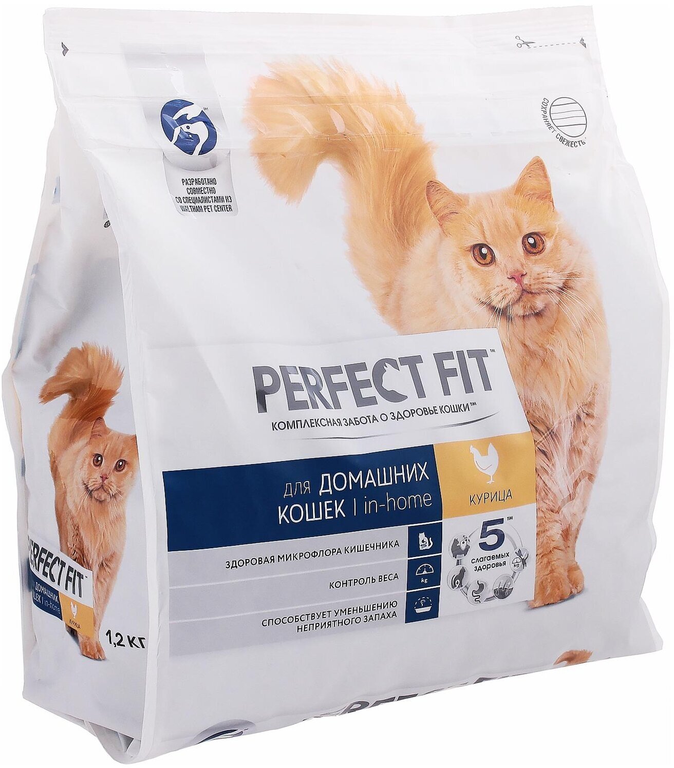Корм сухой Perfect Fit для взрослых домашних кошек всех пород, с курицей, 1.2 кг